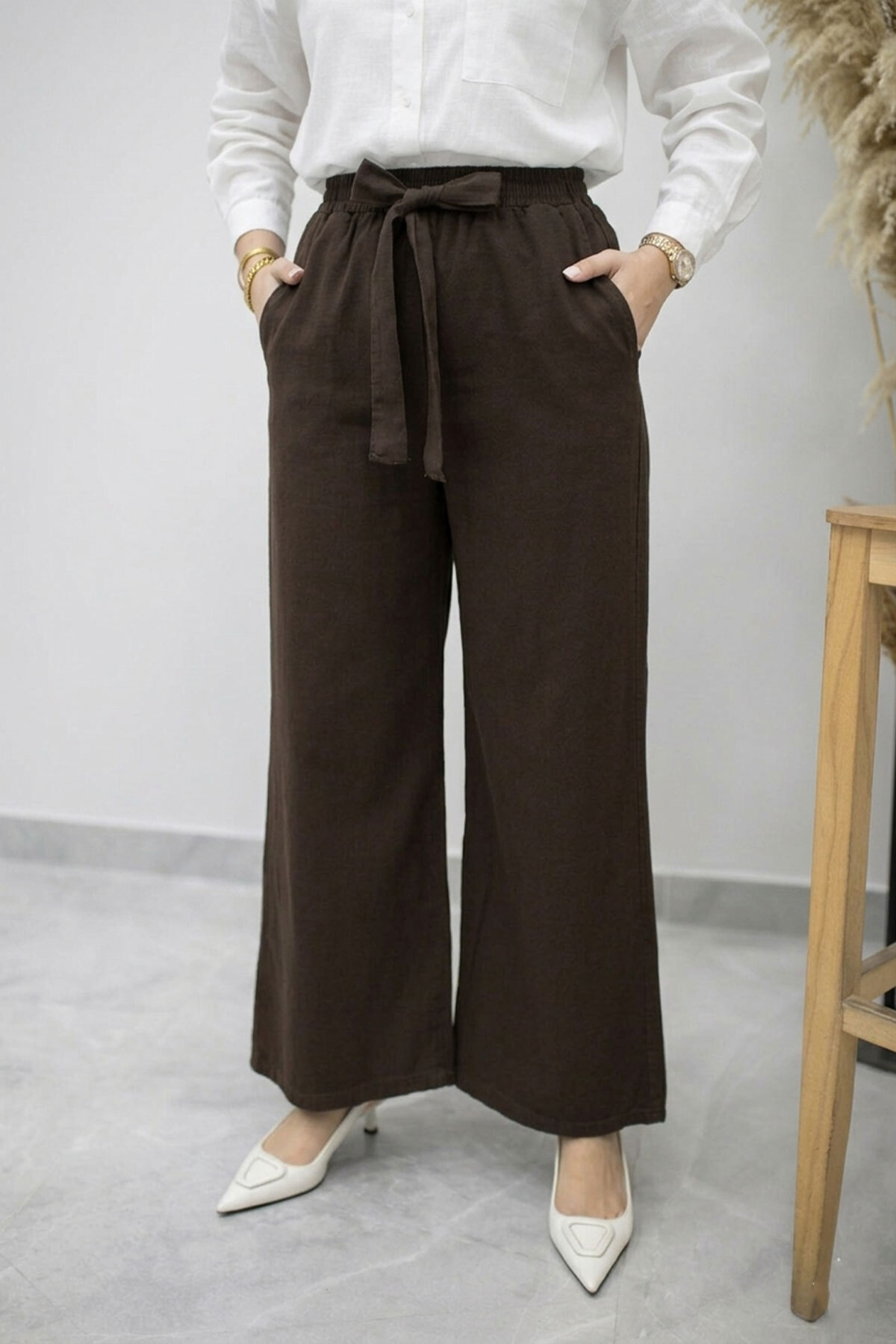 Bağlama Detaylı Cepli Pantolon TSD260166 Kahverengi Özellikleri